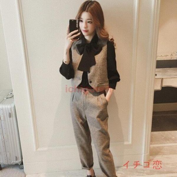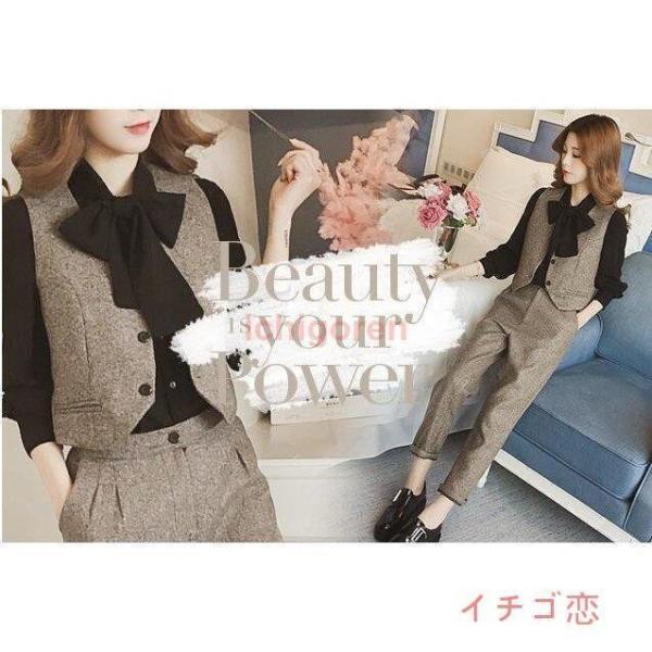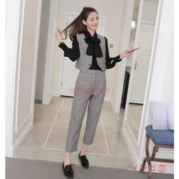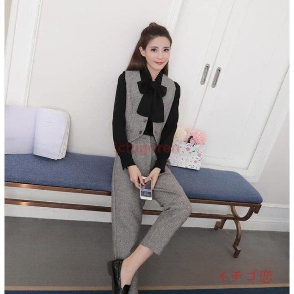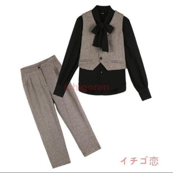 レディーススーツセット 上下セット ベスト パンツ セットアップ 3点 OL 面接 事務服 オフィス 通勤 おしゃれ 細身作り 気質優雅