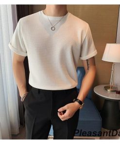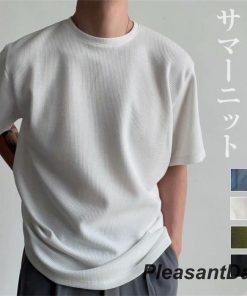 サマーニット メンズ ス クルーネック半袖ニット 半袖 無地 薄手 クルーネック Tシャツ ゴルフ シャツ キレイめ レイヤード 丸首 春 春服 夏 夏服