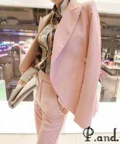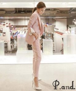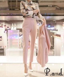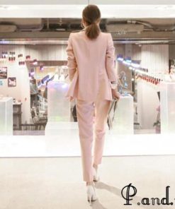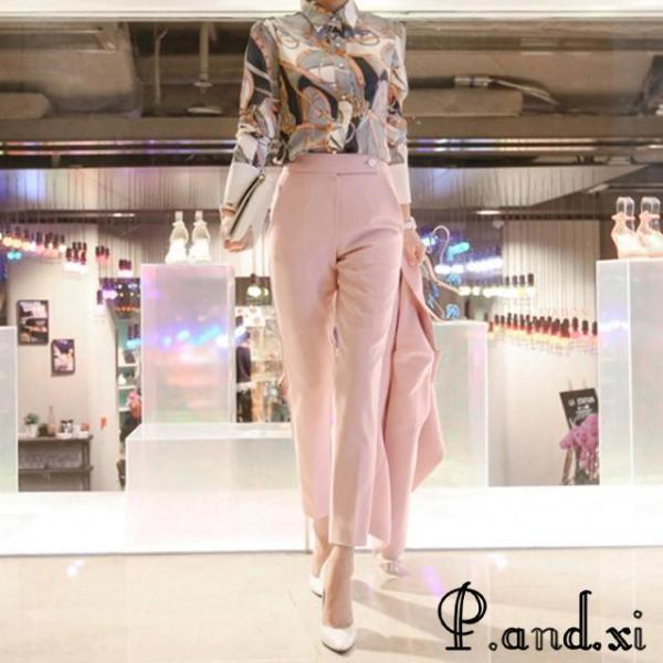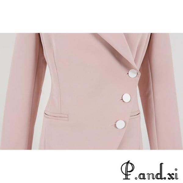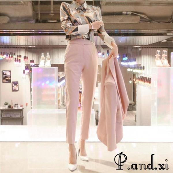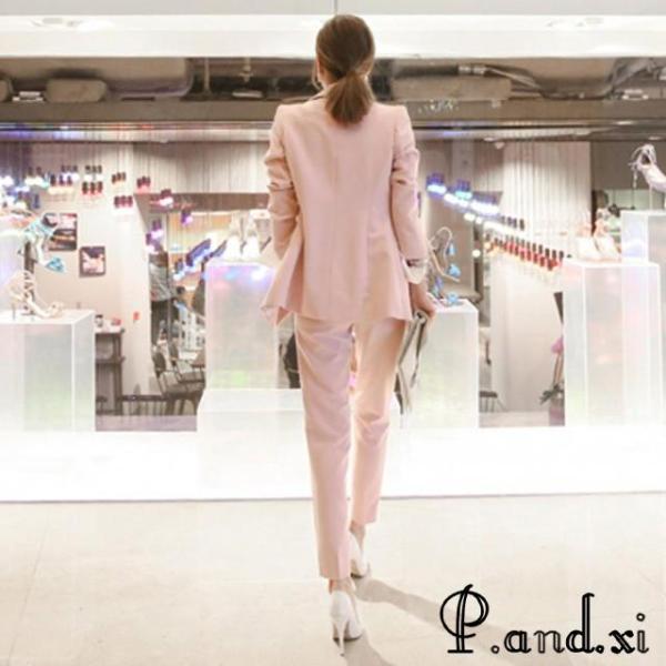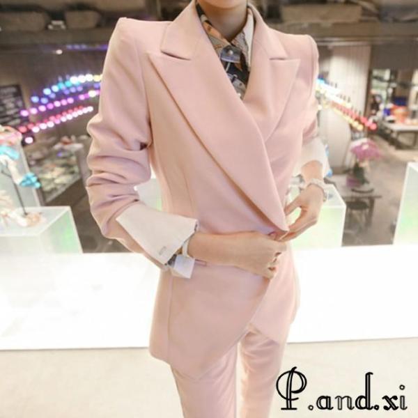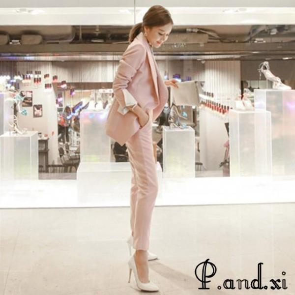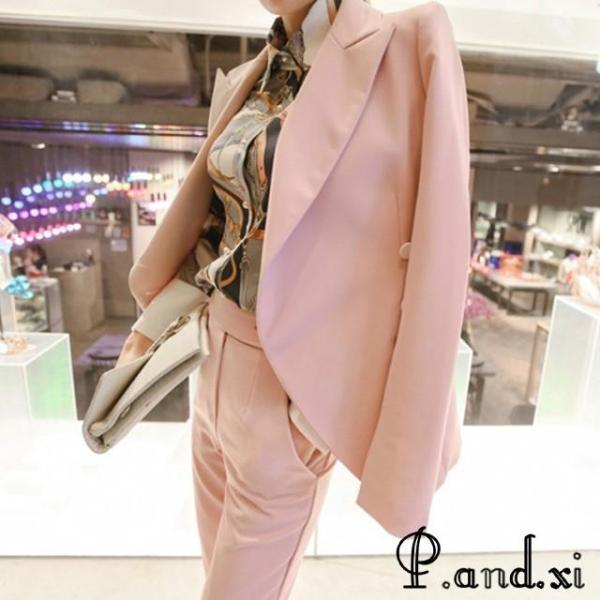 レディースファッション ピンク スーツ レディース OL 通勤 入学式 卒園式 フォーマル パンツスーツ 2点セット 細身 ロングパンツ