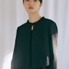 特徴:レギュラーフィット、シャーリング長袖、ノッチドラペル、9分丈、伸縮性のある生地、オープンフロント