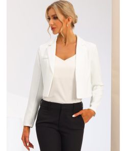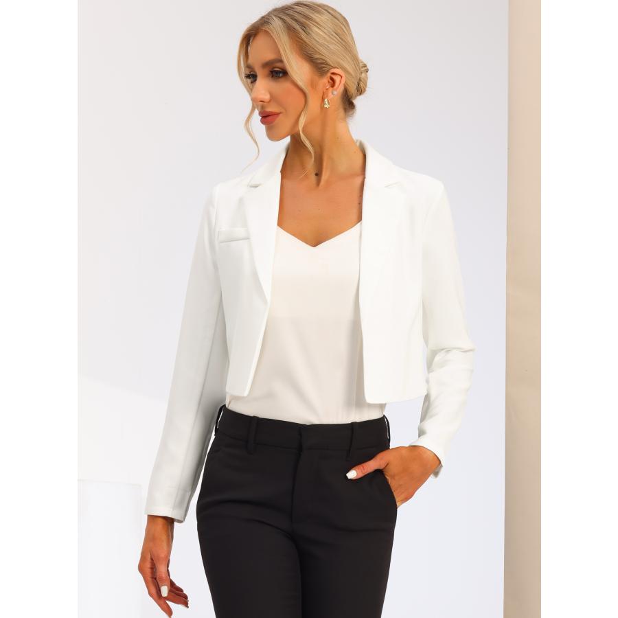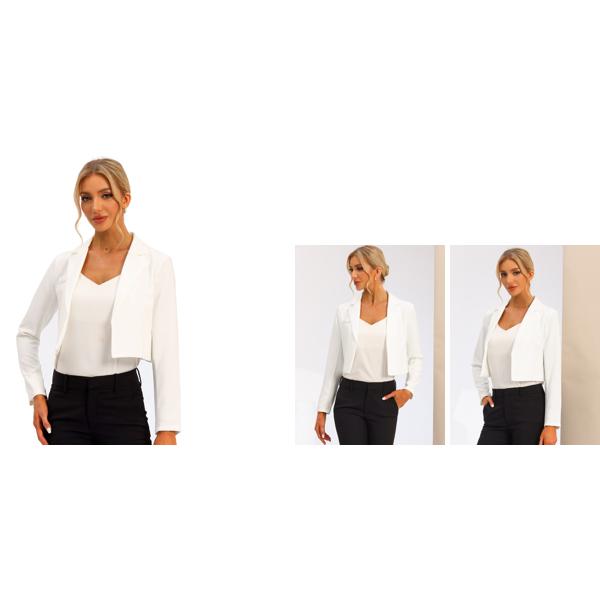 Allegra K クロップドブレザー 長袖ジャケット オープンフロント ノッチドラペル ビジネス レディース ホワイト S