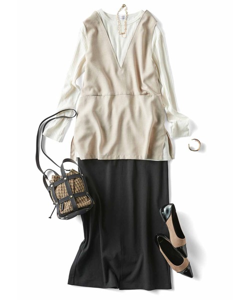 参考商品名:リブ イン コンフォート くぼっち★とコラボ ハリ感&伸びる素材できれい見えする カットソーセットアップ