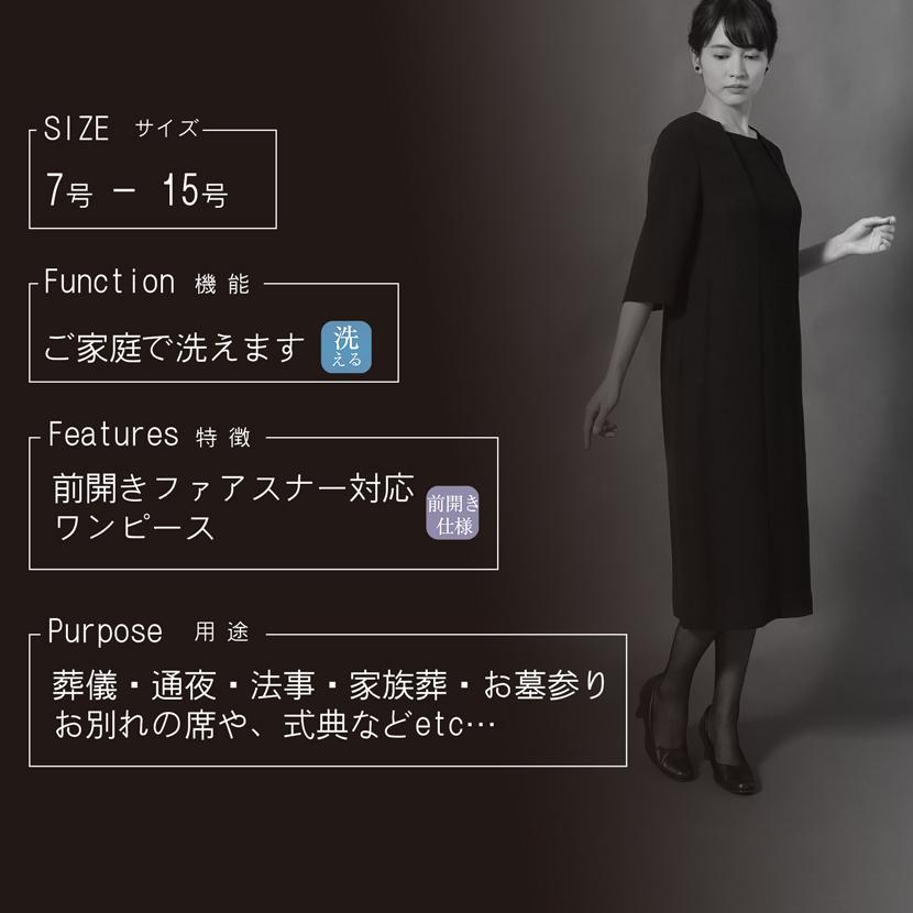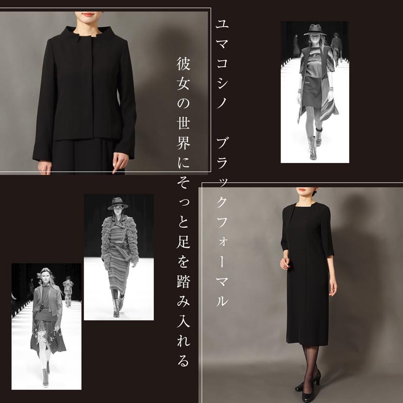 世界的ファッションデザイナーユマコシノのブラックフォーマル[喪服 礼服 レディース]。ユマコシノらしい洗練された立ち襟デザイン。信頼のブランだからこそ、自信を持てる、メアリーココだけの特別な一着です。生地は、正式な場に相応しい、深みのある漆黒の黒です。適度なコシとハリがあり、オールシーズンご着用頂けます。ご家庭で簡単にお洗濯ができる洗えるブラックフォーマルです。ワンピースはお着替えが簡単な、前開きファアスナー対応です。今までにない、新しいデザインのブラックフォーマルながら、着心地にもこだわったブラックフォーマル[喪服 礼服 レディース]